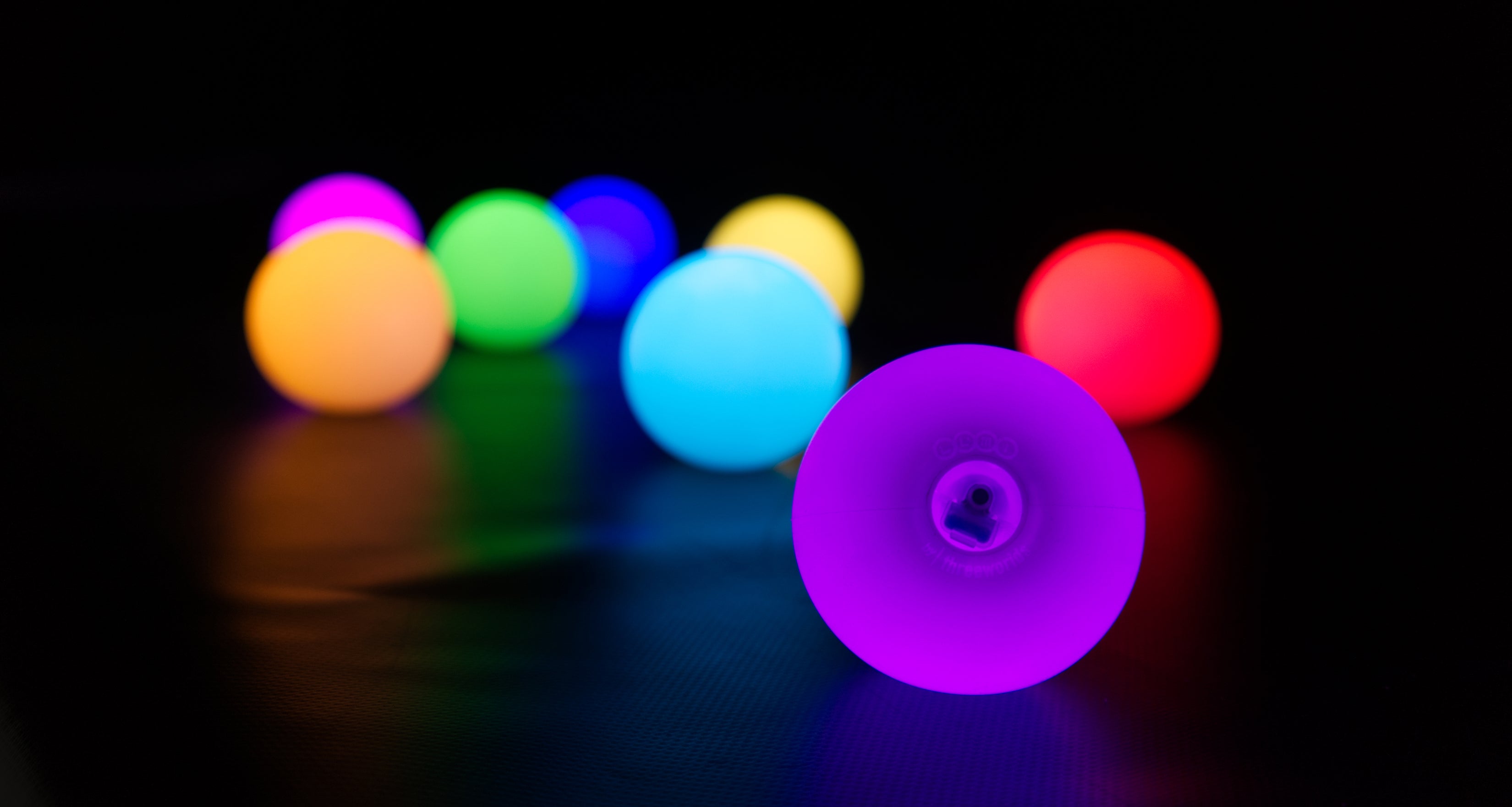 We've made these LED Juggling Balls rechargeable simply by connecting to a USB port making them travel friendly. One press of a button to turn them on and to cycle through the modes.