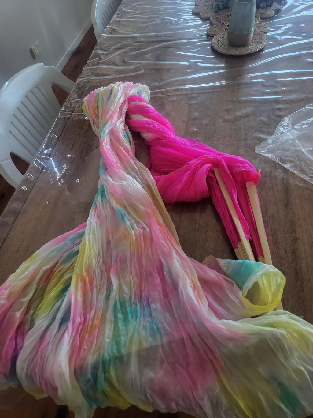 These Silk Veil Fans are made from 100% silk. Designed to enhance your flow and provide vibrant colour to your performance or just for fun. This product is perfect for dance performances, using high quality material to bring your routine to life. 100% silk means the fabric floats through the air as you dance almost as if in slow motion – an effect that can't be duplicated with polyester.